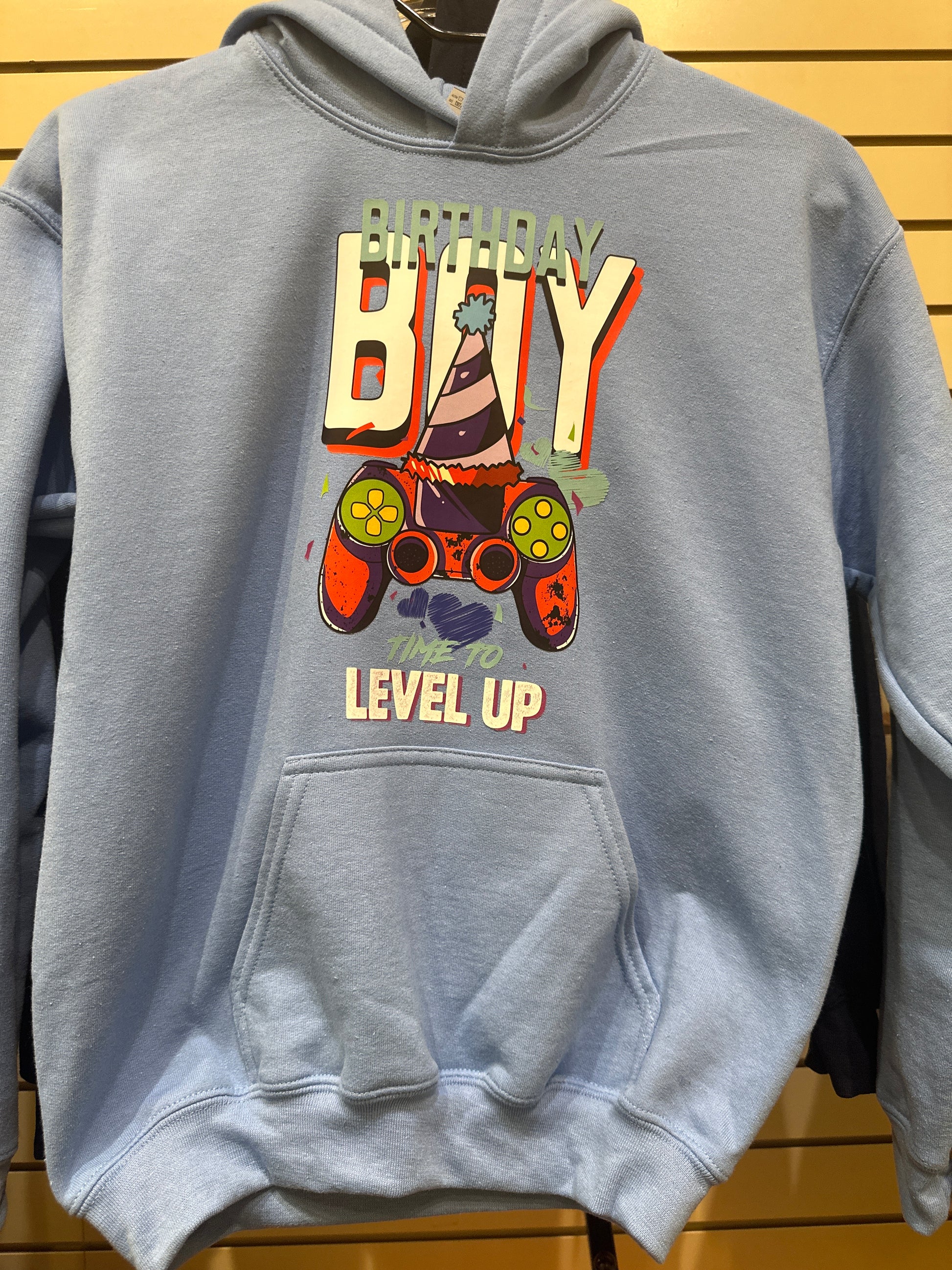 This Kids Crew Neck Sweatshirt is perfect for celebrating the birthday boy! With its comfortable fit and playful design featuring his favorite things - hoodies and video games, it's sure to be a hit. Show off his unique style and let him enjoy his special day in this fun and cozy sweatshirt.